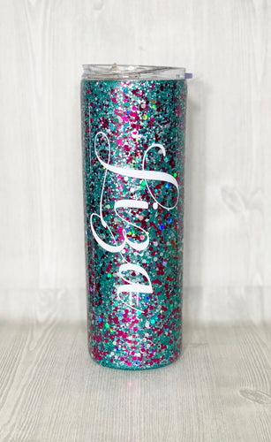 Snow White and Rose Gold Chunky Glitter Tumbler