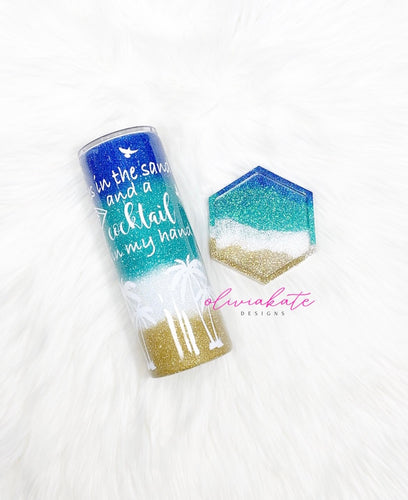 READY TO SHIP! Beach Tumbler & Coaster Combo (Includes a set of 2 coasters)